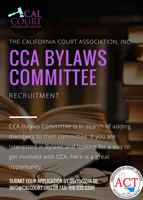 Association of Court Trainers have been in partnership with the California Court Association (CCA) and would like to promote a great opportunity to our ACT members. If you need additional information, please contact ACT Executive Committee members at ACTsoutherncal@outlook.com.