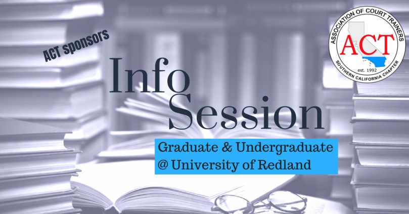 ACT sponsors University of Redlands Graduate & Undergraduate Info Session on Monday, August 20, 2018 at 06:30 PM until 07:30 PM