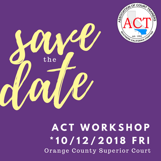 Association of Court Trainers will be hosting a workshop tomorrow in Orange County Superior Court. The workshop will focus on the “Microsoft OneNote: Best Uses for OneNote in Your Training”. This is a free event. To register for this event, click “Register Now” button below. For more information, visit us at www.actsoutherncal.org.